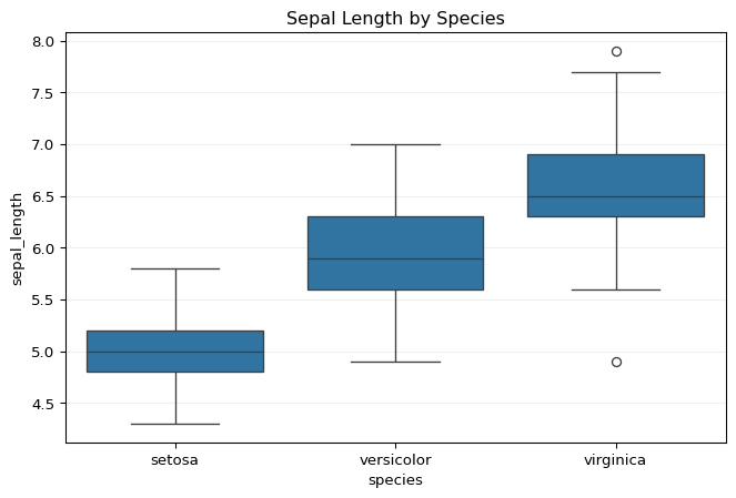 ax.set_title("Sepal Length by Species")